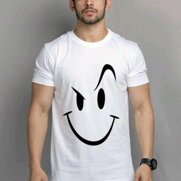 Mens 100% Cotton Smile Emoji Printed Regular Fit Round Neck Half Sleeve T- Shirt