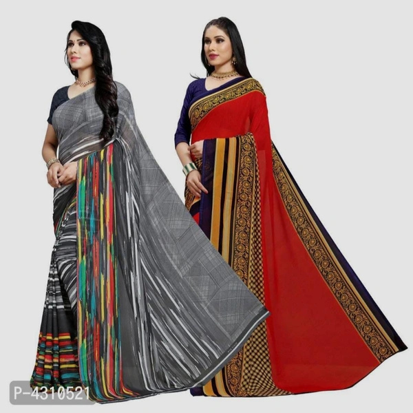 Multicoloured Printed Georgette Saree With Blouse Piece (Pack Of 2)
