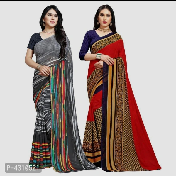 *Multicoloured Printed Georgette Saree with Blouse piece - Pack Of 2* *Size*: Free Size(Saree Length - 5.25 metres) Free Size(Blouse Length - 0.75 metres) *Color*: Multicoloured *Fabric*: Georgette *Type*: Saree with Blouse piece *Style*: Printed *Design Type*: Daily Wear *COD Available* *Free and Easy Returns*: Within 7 days of delivery. No questions asked ⚡⚡ Hurry, 5 units available only