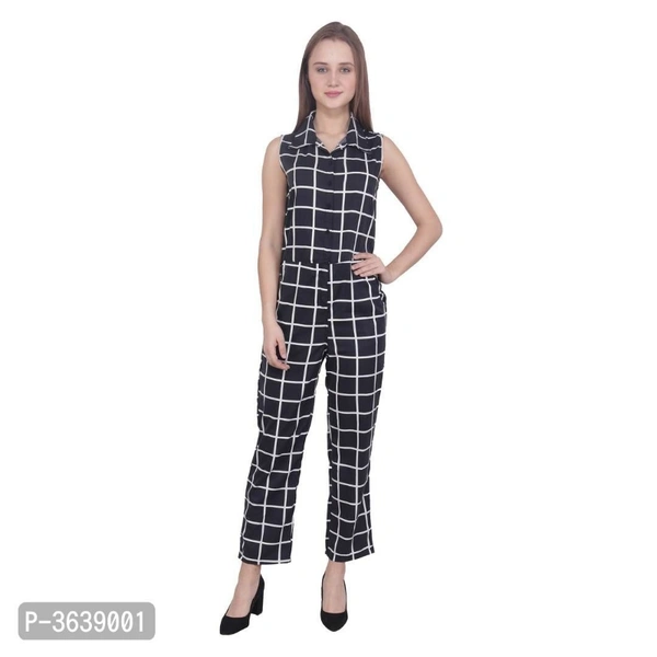 Pretty Black Checked Crepe Women Jumpsuit