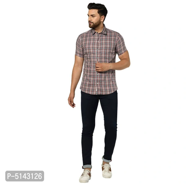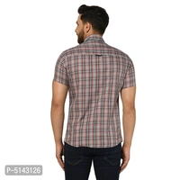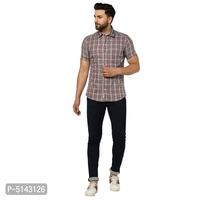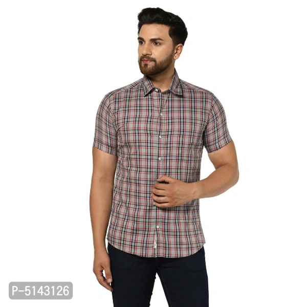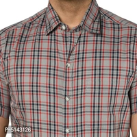 Stylish Cotton Grey Checked Slim Fit Short Sleeves Shirt For Men