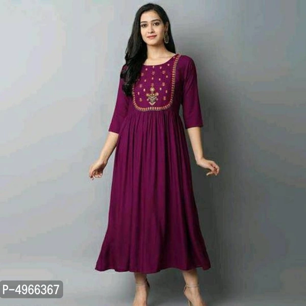 *Stylish Magenta Rayon Embroidered Kurta For Women*
