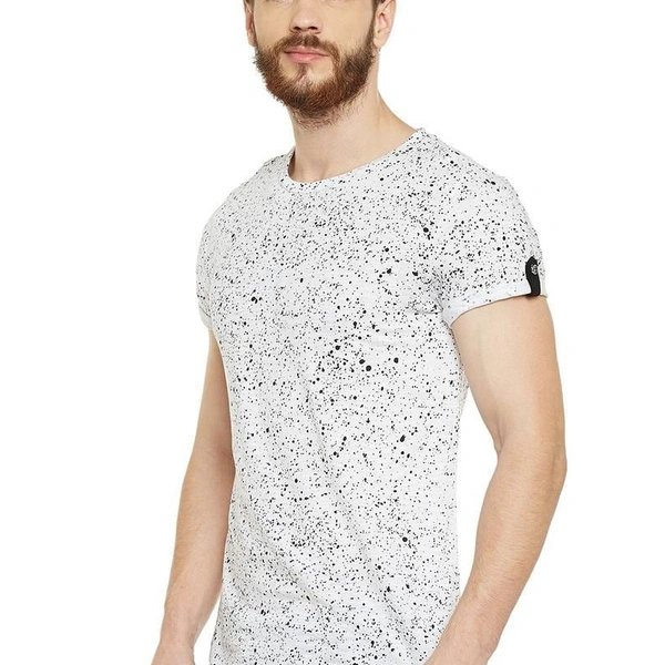 White Cotton Print Round Neck Half Sleeve T-Shirt For Men