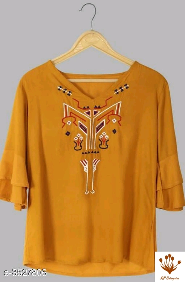 Product Name: *Women's Embroidered Mustard Rayon Top*