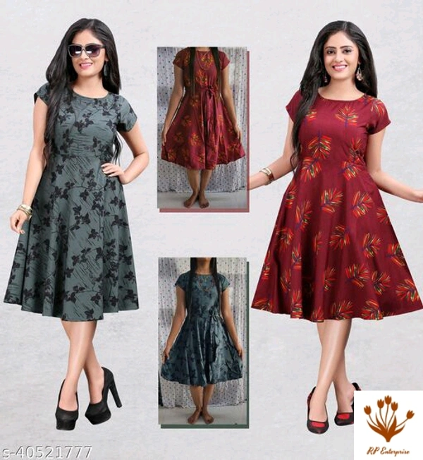 Checkout this latest Dresses Product Name: *Women's Party Wear Multicolor Skater dress (Combo Pack Of 2)* Fabric: Crepe Sleeve Length: Short Sleeves Pattern: Printed Multipack: 2 Sizes: XS (Bust Size: 34 in, Length Size: 37 in) S (Bust Size: 36 in, Length Size: 37 in) M (Bust Size: 38 in, Length Size: 37 in) L (Bust Size: 40 in, Length Size: 37 in) XL (Bust Size: 42 in, Length Size: 37 in) Country of Origin: India Easy Returns Available In Case Of Any Issue *Proof of Safe Delivery!
